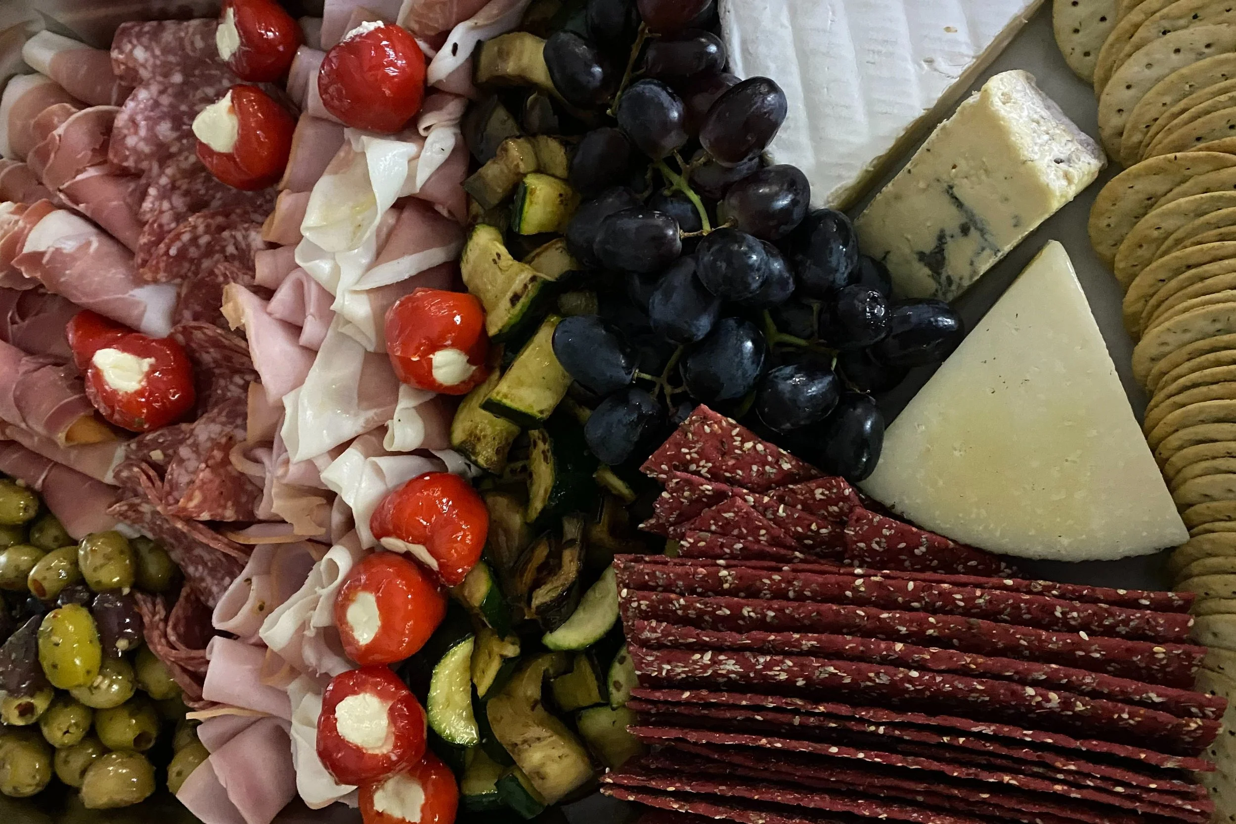 Cured meats, melon with prosciutto, cheeses, roasted vegetables, marinated